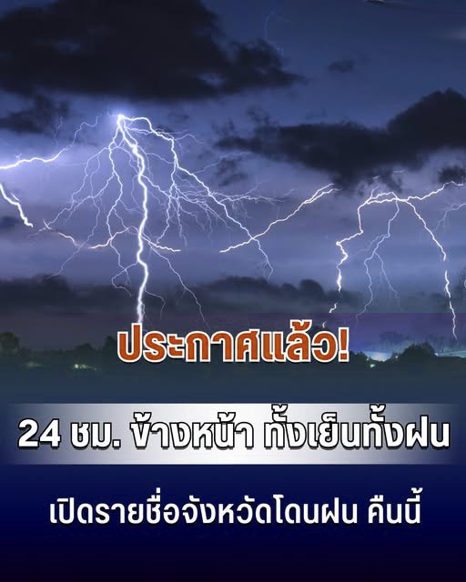 กรมอุตุฯ ประกาศแล้ว 24 ชม. ข้างหน้า ทั้งเย็น-ทั้งฝน เปิดรายชื่อจังหวัดโดนฝน คืนนี้